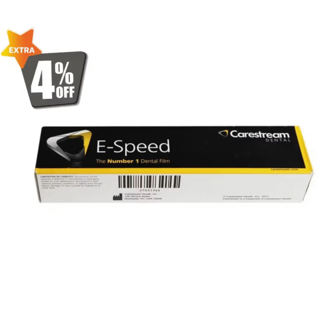 The Carestream E-Speed IOPA X-Ray Films are designed for high-precision intraoral periapical (IOPA) imaging, catering to the demanding needs of dental professionals. These high-speed E-type films require 50% less radiation exposure compared to conventional D-speed films, ensuring enhanced patient safety without compromising image clarity. Advanced emulsion technology guarantees consistently sharp and high-contrast images, optimizing diagnostic accuracy and treatment planning.